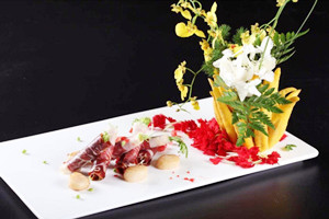 假如火腿有靈性,相信最愿意落在一位能將它千變?nèi)f化的大廚手中。就像我們一樣,在遇到真正的高手時(shí),也總難掩興奮和激動(dòng)。?華小富,一位從16歲就開始做廚師,至今已經(jīng)有了十幾年從業(yè)經(jīng)驗(yàn)。打通我們報(bào)名電話時(shí),他說的第一句話是:“讓我們指點(diǎn)你們一下,怎么做好火腿菜?!蹦欠N隔著電話就能清晰感受到的自信。? 不過親眼見到了,才知道這種自信的確有道理:從冷菜到熱菜,從主食到甜品……
