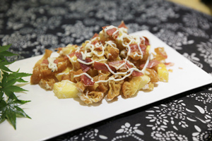 “金字百變火腿”創(chuàng)意秀,遍尋民間家常火腿菜的創(chuàng)意做法。征集消息發(fā)出至今,已有不少市民愿意一秀才藝。?在這個(gè)過程中,有專業(yè)大廚,有退休老人,有美女廚娘,也有這個(gè)城市里最普普通通的上班族。不可否認(rèn),大廚、專業(yè)人士們的擺盤、用料更為講究,但其實(shí),很多時(shí)候,帶給我們驚喜的卻反倒是那些看上去普普通通,甚至連名字都是現(xiàn)取的家常菜,夠自然,夠純粹,甚至,還經(jīng)常能從中發(fā)現(xiàn)一些小驚喜?;蛟S,也就是做菜人的這些小心思,成就了我們這些品嘗者味蕾的驚喜,就像這次來應(yīng)征的這桌火腿菜,看著普通,吃到的人,微笑卻無一不由心綻